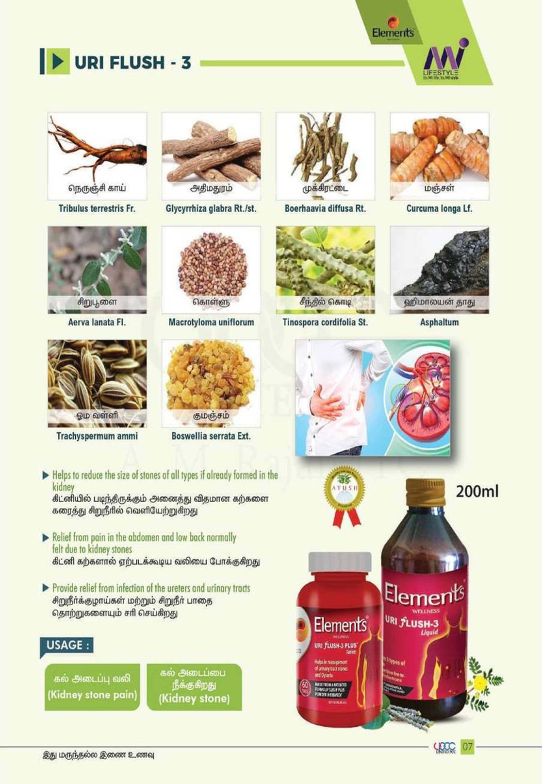- The herbs in Elements Wellness Uri flush-3 help dissolve most of the major urinary stone over time with regular usage.