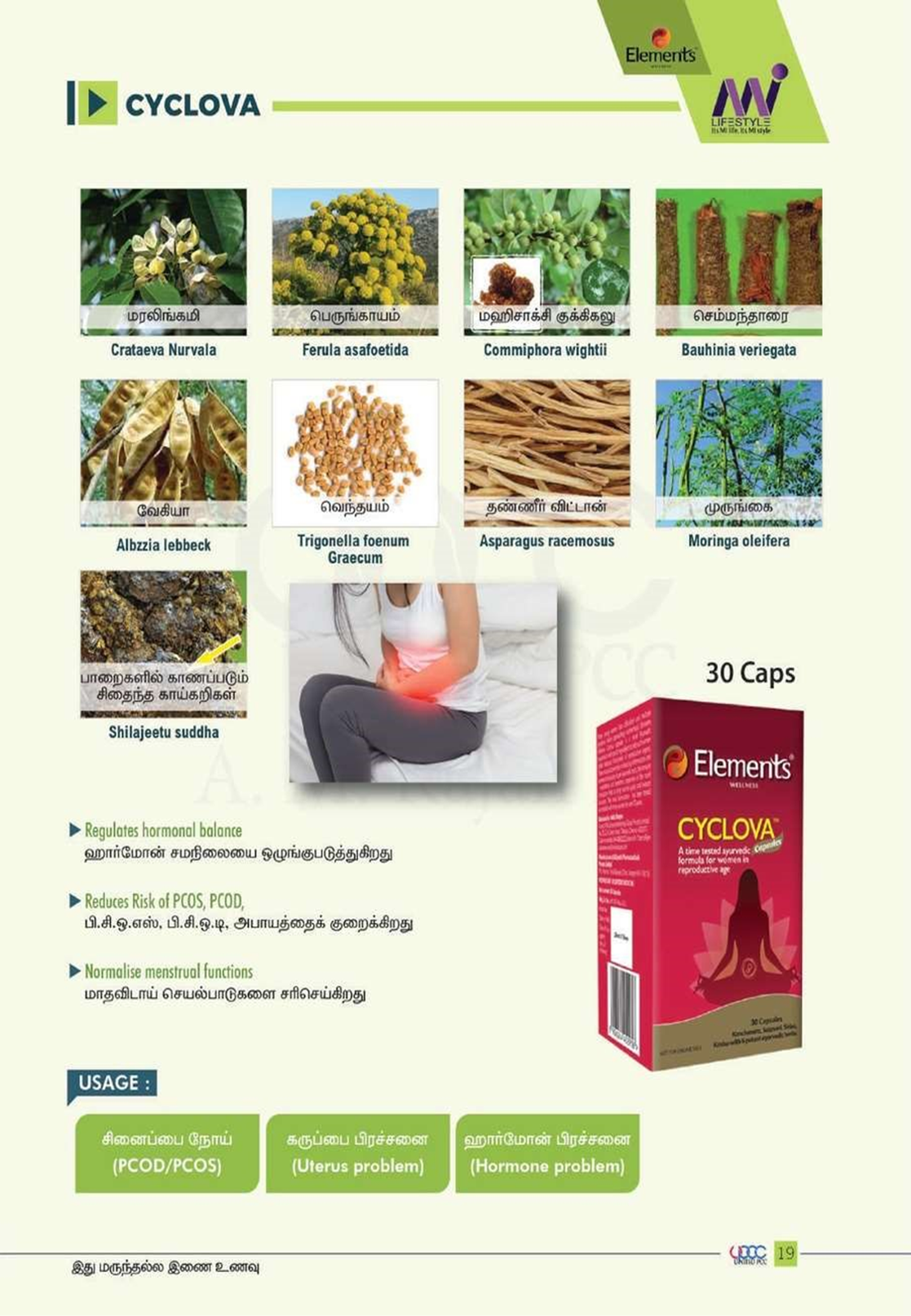 Elements Wellness Cyclova is a great solution for the management of PCOS. It is a novel product all-natural ayurvedic ingredients. This formula is backed by an experience of efficacy and safety of over 20 years by Ayurvedic physicians in India.